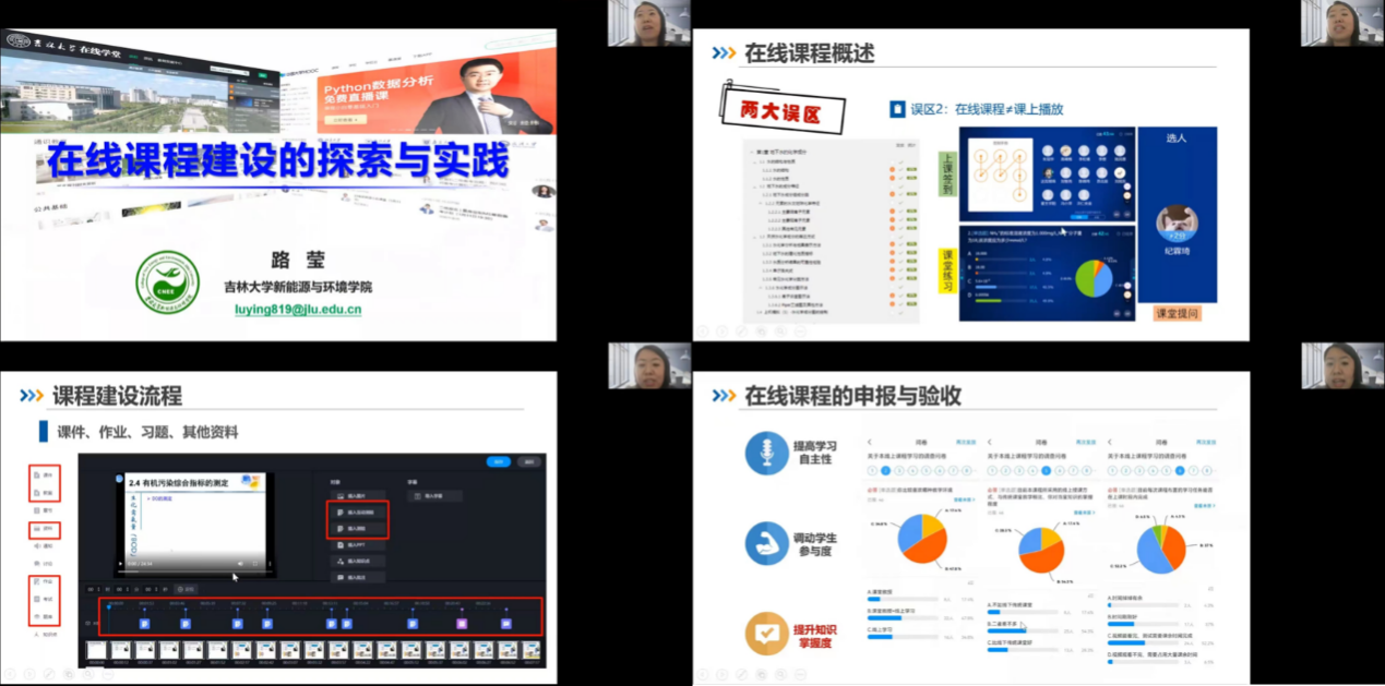 随后公司青年教师路莹副教授做了“在线课程的建设与实践”汇报分享,路老师曾获得全国水利类青年教师讲课比赛特等奖,主持建设的《水分析化学在线课程获伟德bv国际体育精品在线课程称号。路老师的报告结合自身在线课程建设的亲身经历和体验,分别从在线课程建设准备、在线应用与课程申报和验收三个方面展开。首先,分享了其在课程建设准备阶段如何操作平台,快速建课、如何进行知点点碎片化和视频录制;然后着重就如何借助线上线下混合方式提高员工参与度的具体方法提出了切实可行的建议;最后以个人两门在线课程的申报书和验收报告为实例,详细介绍了每个环节中遇到的问题和解决办法,为老师们今后更好地开展在线课程建设与申报提供有益帮助。