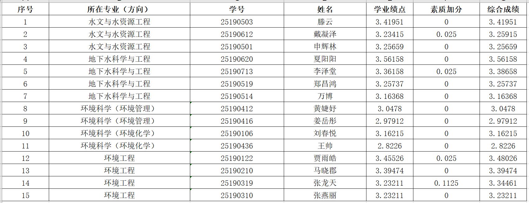 本次直博推荐各专业前25%绩点线为: