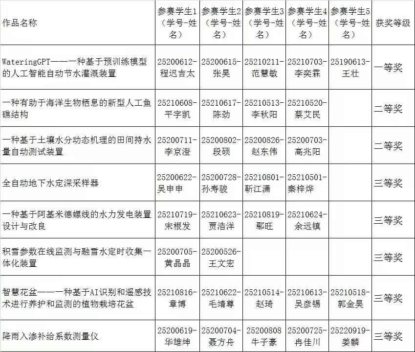 根据《关于举办第八届全国老员工水利创新设计大赛的通知》(水教协[2023]11号)要求,伟德bv国际体育于2023年4月28日组织了水利创新设计大赛院赛,对本次申报的8个作品进行了评审,确立一等奖1项,二等奖2项,三等奖5项,推荐《WateringGPT——种基于预训练模型的人工智能自动节水灌溉装置》、《一种有助于海洋生物栖息的新型人工鱼礁结构》、《一种基于土壤水分动态机理的田间持水量自动测试装置》三项作品参加国赛,现予公示,公示时间2023年4月28日至5月4日,如有异议,请拨打电话88502167。