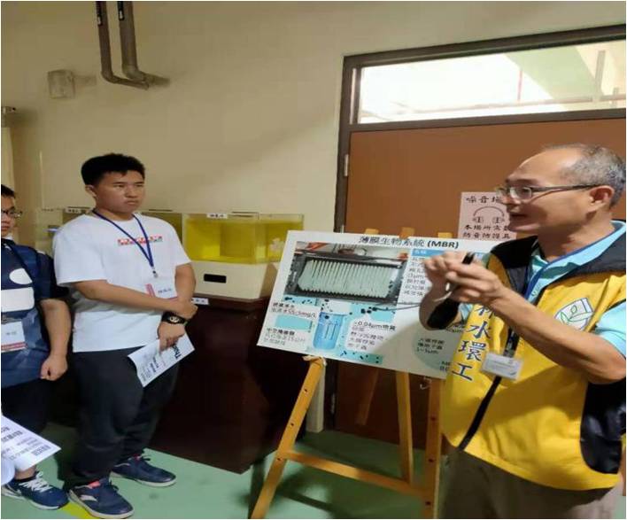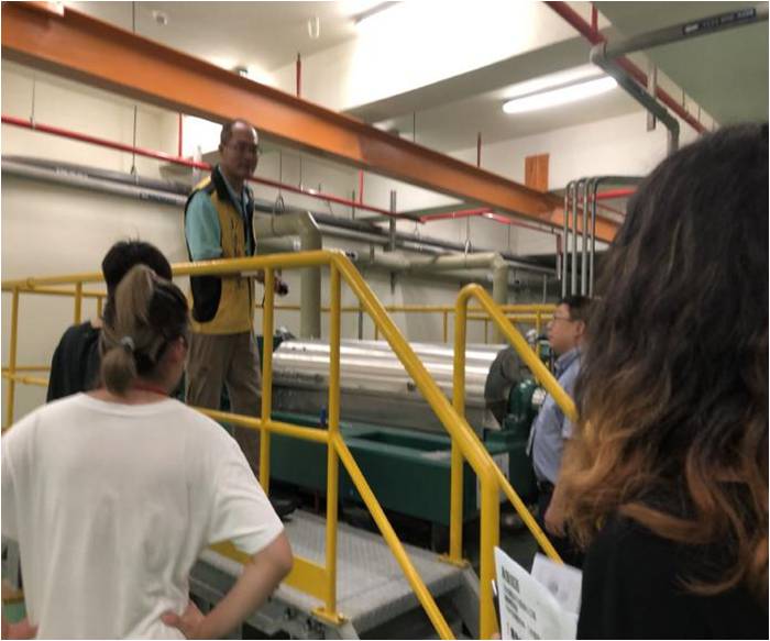 午后,日将出未出,云将舒未舒,在助教带领下同学们来到了位于一处水资源回收中心进行参访学习。水湳水资源回收中心坐落于水湳经贸园区内,肩负着整个园区污水处理和中水供给的重要使命。整个污水处理厂大部分位于地下,辅以开始,中心负责人刘展志厂长先在报告厅以PPT和3D模型的形式向同学们介绍了水资源回收中心的建造历史、构成及功能。作为一家新建立不久的净水中心,其MBR膜技术水处理技术引起了同学们的强烈求知欲。所谓百闻不如一见,在听取了短暂的报告后,同学们便进入地下场地参观。参观后程同学们还利用VR多媒体互动技术,亲身体验了一把将污水回收净化的有趣过程。时间过的很快,但同学们对知识的探求却远远没有止境,返回会议室后纷纷向刘厂长及技术人员抛出了一个接一个的问题,他都耐心给予了解答,现场气氛非常活跃,大概问答了约40分钟后大家意犹未尽的告别了这个实习场地。
