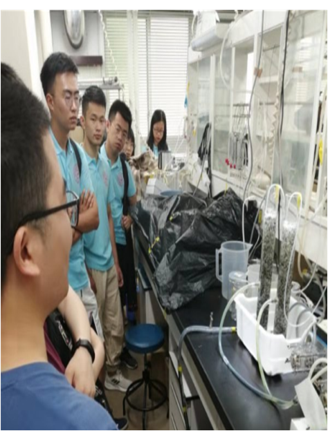 筑波大学是一所以研究型为主的大学,接下来同学们就来到了筑波老员工命环境科学研究科张振亚教授和累中方教授研究团队的实验室,感受一下筑波大学的研究氛围。张振亚教授和累中方教授研究团队是筑波大学非常具有实力的团队,研究方向主要为水污染物处理、有机废弃物能源化等。曾培养出数十名优秀的中国博士和硕士职工,发表了多篇环境科学与工程领域的顶级论文,连续多年获得筑波大学毕业生董事长表彰。实验台上摆满了员工们的实验用品,这里的实验用品跟国内不同,筑波的员工们将藻类做成了各种颗粒,这样便于储存。下图中同学们正在观察的装置就是藻颗粒菌颗粒共存处理污水的装置,这样可以由藻类光合作用给菌类提供氧气,从而使这个装置可以不需要从外部接受氧气。筑波的中国职工们不仅对实验室进行了详细的介绍,还给同学们介绍了在筑波大学的职工活,也让公司师生对筑波大学有了更多的了解。
