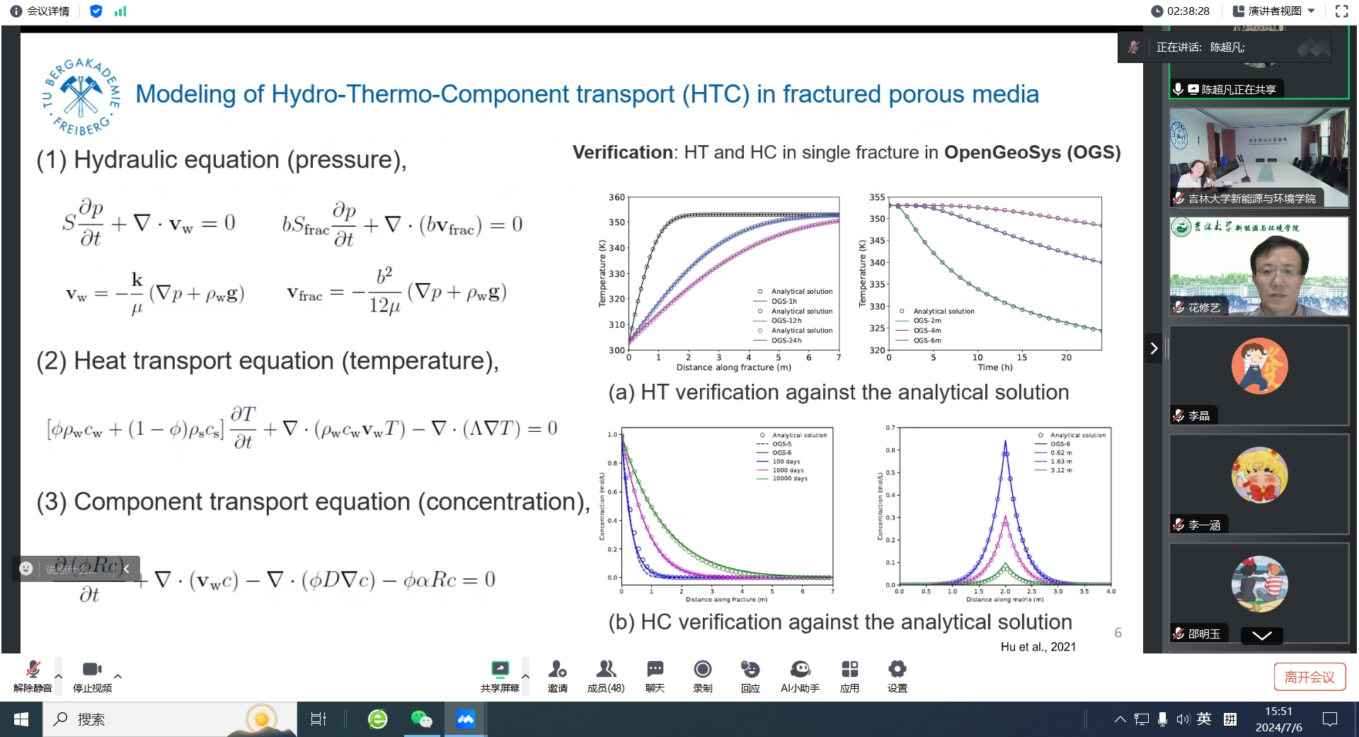 论坛由公司花修艺副经理主持并致开幕词。花修艺副经理从公司的学科设置、团队队伍、科技创新、人才培养、国际合作与交流以及人才引进政策等方面做了简要介绍。随后,6位青年学者围绕CO2地质封存多尺度数值模拟、水环境中典型新污染物的光化学行为及污染控制、磷污染治理与资源回收、水资源可持续开发利用、矿山地热研究等多个水资源、环境、新能源前沿热点领域分享学术成果,并与公司师生就相关内容进行了积极互动和深入交流。最后,花修艺副经理对论坛做了总结,他衷心地感谢各位青年学者的积极参与和支持,并邀请青年学者们将来能有机会到伟德bv国际体育工作、交流。