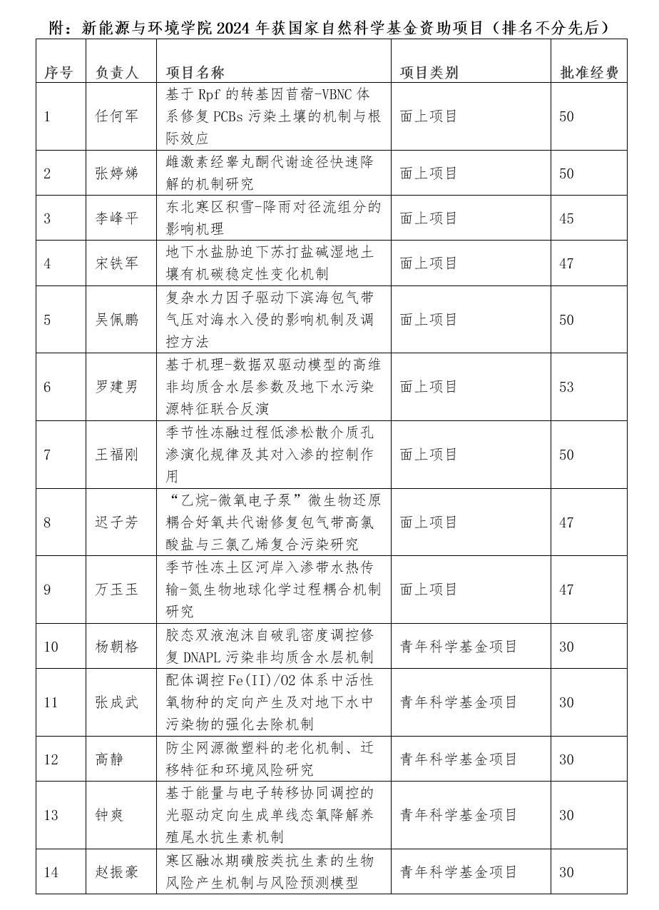 2024年国家自然科学基金项目评审结果已公布,公司共有14位教师申请的项目获批,创历史新高,今年公司共申请自然科学基金项目57项,获批项目14项,总体获批率为24.56%。其中面上项目获批9项,面上项目获批率为26.47%,青年基金项目获批5项,青年基金项目获批率为38.46%,总批准经费589万元。