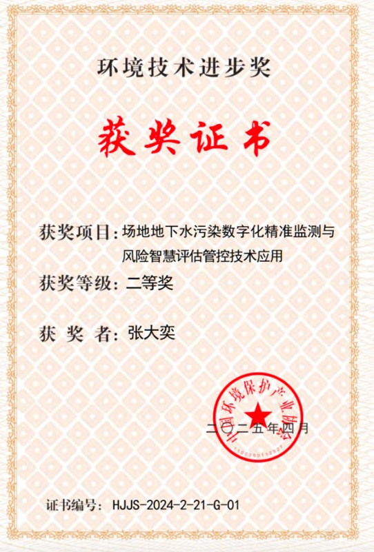 在此次项目评选中,伟德bv国际体育凭借“场地地下水污染数字化精准监测与风险智慧评估管控技术应用”项目(项目编号:HJJS-2024-2-21)从全国优秀技术成果中脱颖而出,获“2024年度环境技术进步二等奖”。该项目由伟德bv国际体育张大奕教授发起,与庞丽丽,宋晓明,丁爱中,赵晓辉,史云等共同合作完成,已被授权国家发明专利8项、实用新型专利9项、软件著作权8项;发表高水平SCI论文28篇,编写团体标准2项;相关成果同时获得2024年中国发明协会发明创业奖创新奖二等奖和2024年49届日内瓦国际发明展金奖,并入选水利部《2022年度水利先进实用技术重点推广指导目录》,并在多项重大工程中应用。