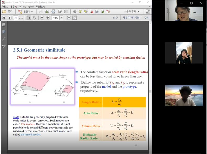 2020年突如其来的新冠肺炎疫情致使众多计划被扰乱,令人猝不及防。在该背景下,为能正常保证公司员工进行国际交流学习,公司聘请韩国忠南国立大学Jung Kwnasue教授于网络线上开展授课。本次课程名称为水力学及其应用,主要就水力学基本概念和理论进行讲授,以期员工能够学会必要的分析计算方法和实验技术,解决工程中的水力学问题。