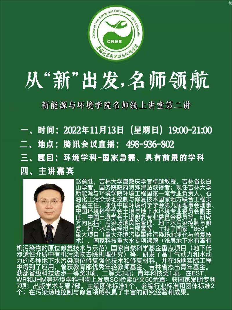 为了更好的解答同学们心中的疑惑,让同学们对自己的职业规划和努力方向有更清晰的认识,从“新”出发,名师领航——伟德bv国际体育名师线上讲堂第二讲邀请到了赵勇胜教授给同学们授课:“环境学科——国家急需、具有前景的学科”。