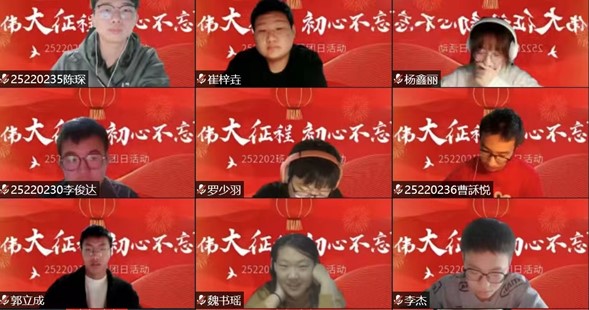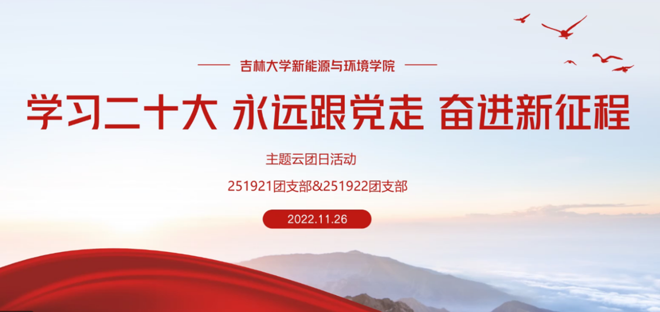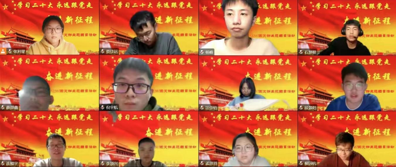 党的十八大以来,以习近平同志为核心的党中央团结带领全党全国各族人民不断奋斗。新时代的十年,是全方位、历史性的伟大成就与伟大变革,极不寻常、极不平凡的十年。走过百年奋斗历程,历经革命、建设、改革和新时代的淬炼,党的二十大明确了新征程中国共产党的前进目标与行动指南。党的二十大高瞻远瞩、擘画未来,在政治上、理论上、实践上取得一系列重大成果。成就来之不易,启示弥足珍贵。认真学习宣传贯彻党的二十大精神,是当前和今后一个时期共青团的首要政治任务。为帮助青年深入学习党的二十大精神,更好团结引领广大青年为实现中华民族伟大复兴的中国梦贡献青春力量,共青团中央于2022年11月26日(周六)19:00在各新媒体平台同步推出“学习二十大 永远跟党走 奋进新征程”主题云团课。伟德bv国际体育全体团支部线上观看本次团课开展体会分享主题云团日活动。