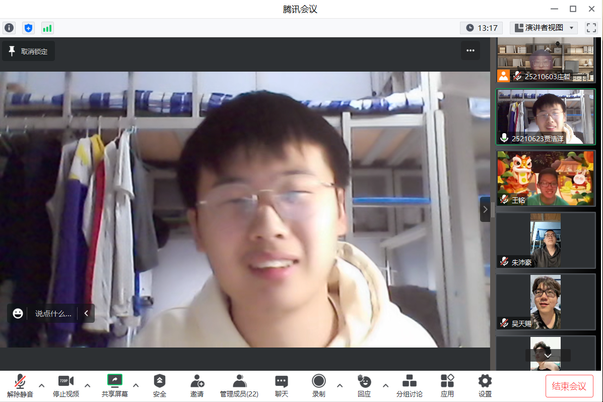 252106班班长王铭从典型案例入手,为同学们详细讲解了电信网络诈骗的惯用套路与造成的危害。他针对在校老员工这一对象群体,结合近几年老员工上当受骗的多种不同诈骗手段,对遇到电信网络诈骗应当如何解决提出了一些实用性的建议。她强调安装国家反诈APP的重要性,提醒老员工要拭亮“眼皮子”,甄别各类诈骗案件,守好“钱袋子”,保证私人财产安全。