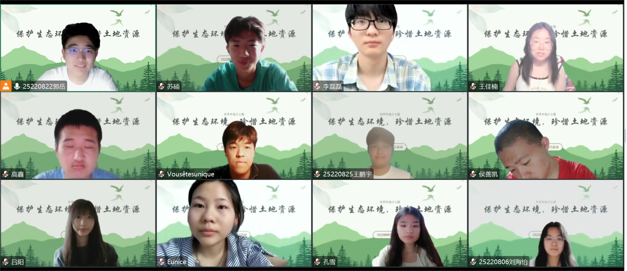 2023年6月25日为第三十三个全国土地日,6月5日为第52个世界环境日,口号为“减塑捡塑”。为培养同学们爱护环境、节约资源的意识,2023年6月18日中午,252208班团支部在团支书郭岳的带领下开展“保护生态环境 珍惜土地资源”主题团日活动暨全国土地日和世界环境日主题团日活动。本次团日活动通过线上腾讯会议的方式举办,参与人员有支部内13名共青团员和5名班级成员。