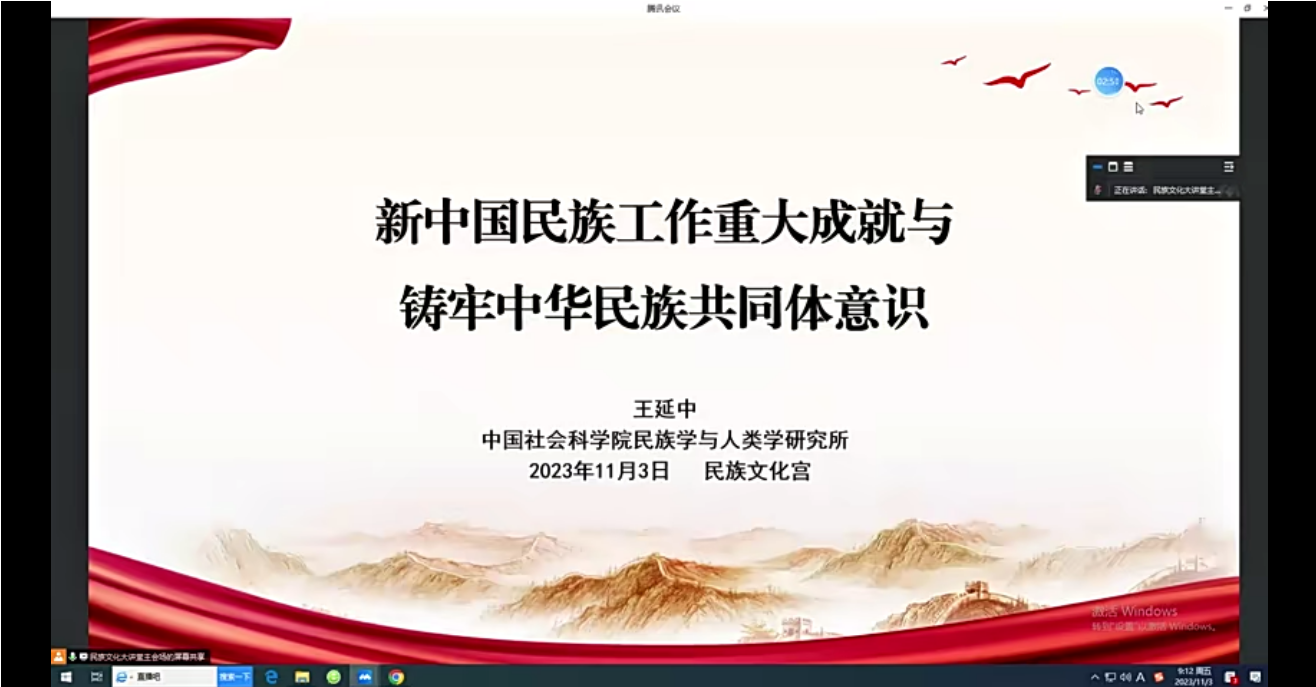 为深入学习贯彻习近平总书记关于铸牢中华民族共同体意识重要讲话精神,推动铸牢中华民族共同体意识的理论与实践体系构建,2023年11月3日上午9点,中国社会科公司民族学与人类学研究所所长王延中同志做客民族文化宫“民族文化大讲堂”,就总书记在中共中央政治局第九次集体学习时的重要讲话精神做《新中国民族工作重大成就与铸牢中华民族共同体意识》专题讲座,伟德bv国际体育本科员工第一党支部、第二党支部党员线上参会。