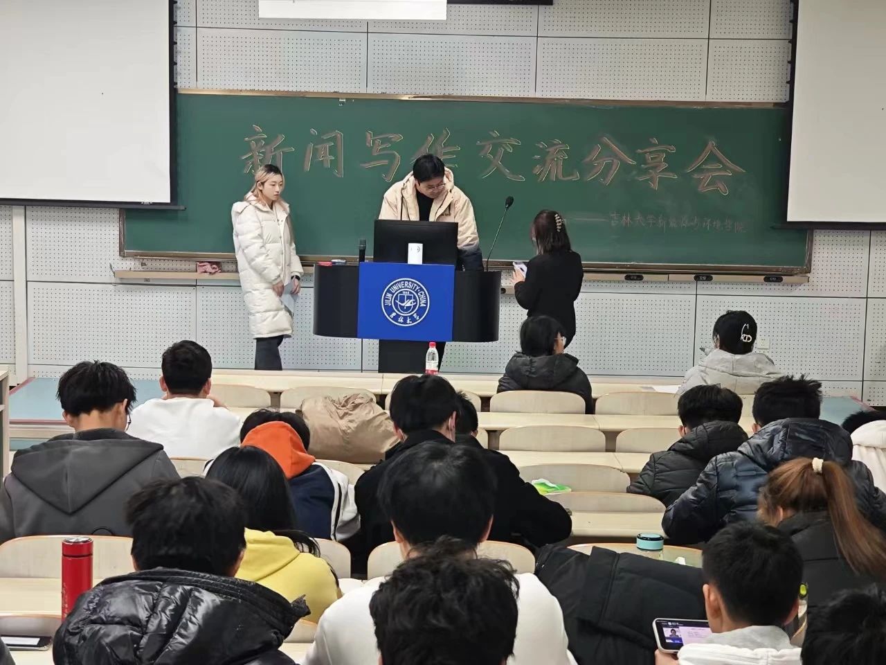 为提升公司宣传工作质量,并帮助团学组织新成员尽快熟悉新闻写作相关工作,伟德bv国际体育新媒体中心于11月16日在李四光教学楼104教室召开了新闻写作交流分享会。本次活动由公司新媒体中心主任王佳楠同学主持,全体团学组织成员参与,并邀请到文公司暨新闻与传播公司新闻中心主任刘晨欣同学、闫梓锋同学以及新闻中心副主任刘奕麟同学。其中,刘晨欣同学作为主讲人为大家分享了新闻写作经验。