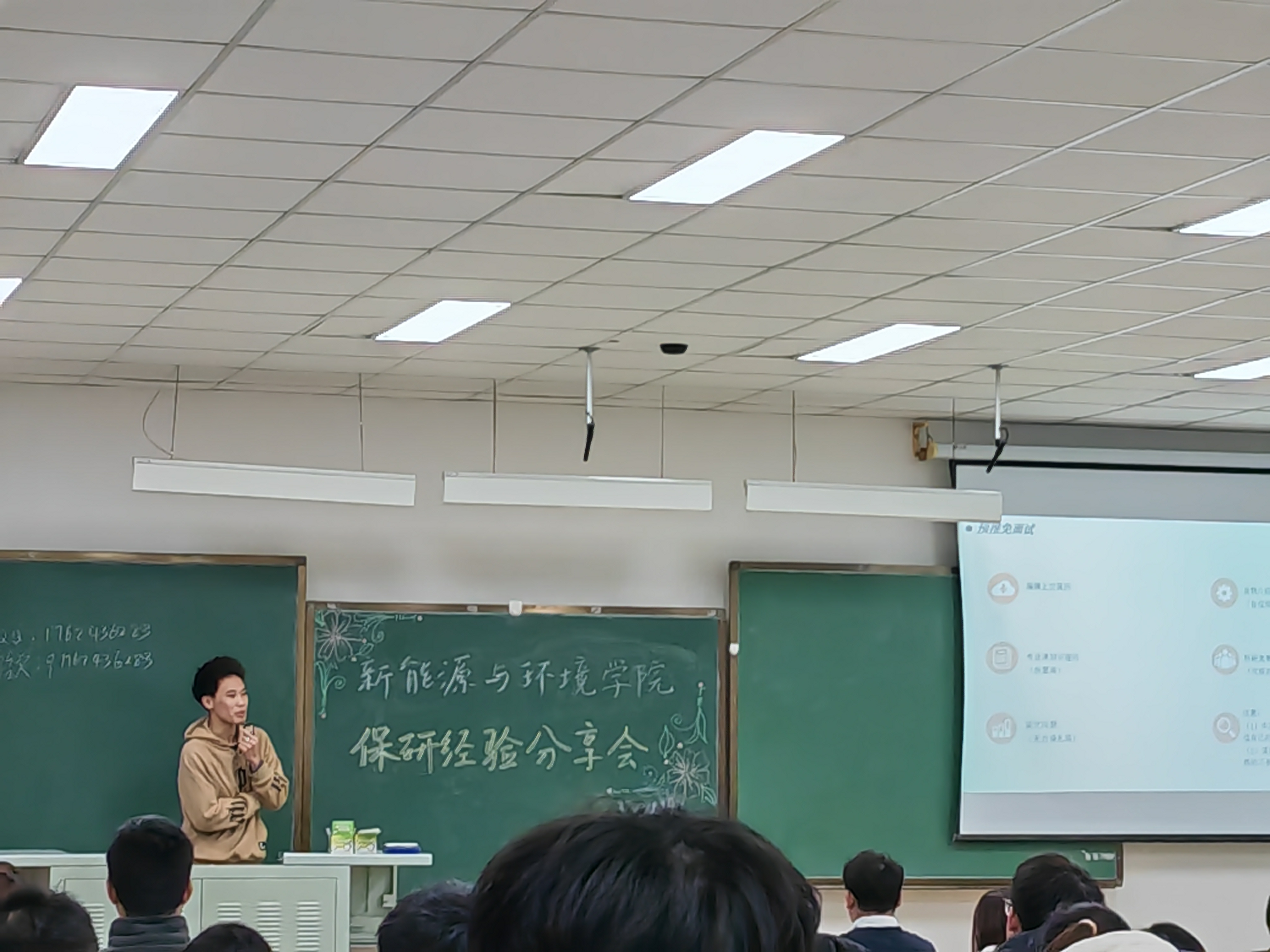 毛宇鹏学长告诉大家要认真学习,从大一就要开始准备,时刻关注网站信息避免错过;他也告诉大家中英文问题都需提前准备,简历上写的会被提问,要戒骄戒躁,稳住心态。