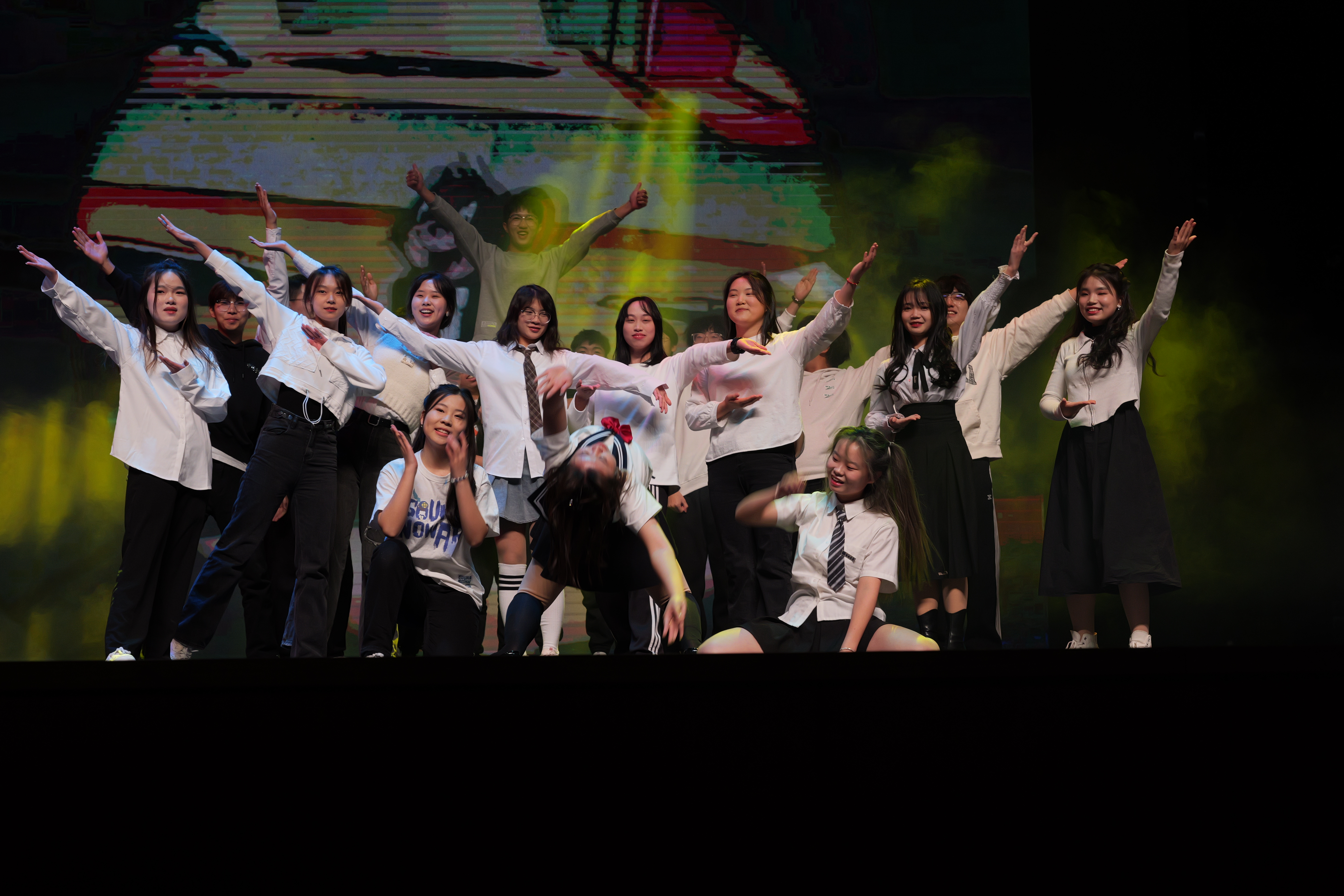 舞蹈《桃花朵朵开》以耳熟能详的歌词,精准的卡点动作,使同学们不禁放声高歌,随音舞动,现场氛围轻松愉悦。