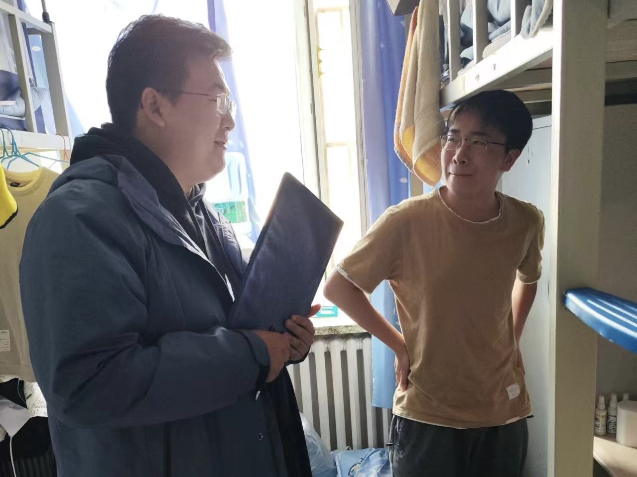 4月20日,2022级辅导员母茂松老师进入中心校区员工寝室,开展查寝工作。共检查39间员工寝室,检查卫生情况,提醒员工,季节变暖,要保持寝室卫生,多开窗通风,多户外锻炼。同日,母老师又深入地下水科学与工程专业课《水文地质学基础》课堂,发现2人请假,1人迟到,其余38人按时到达课堂。