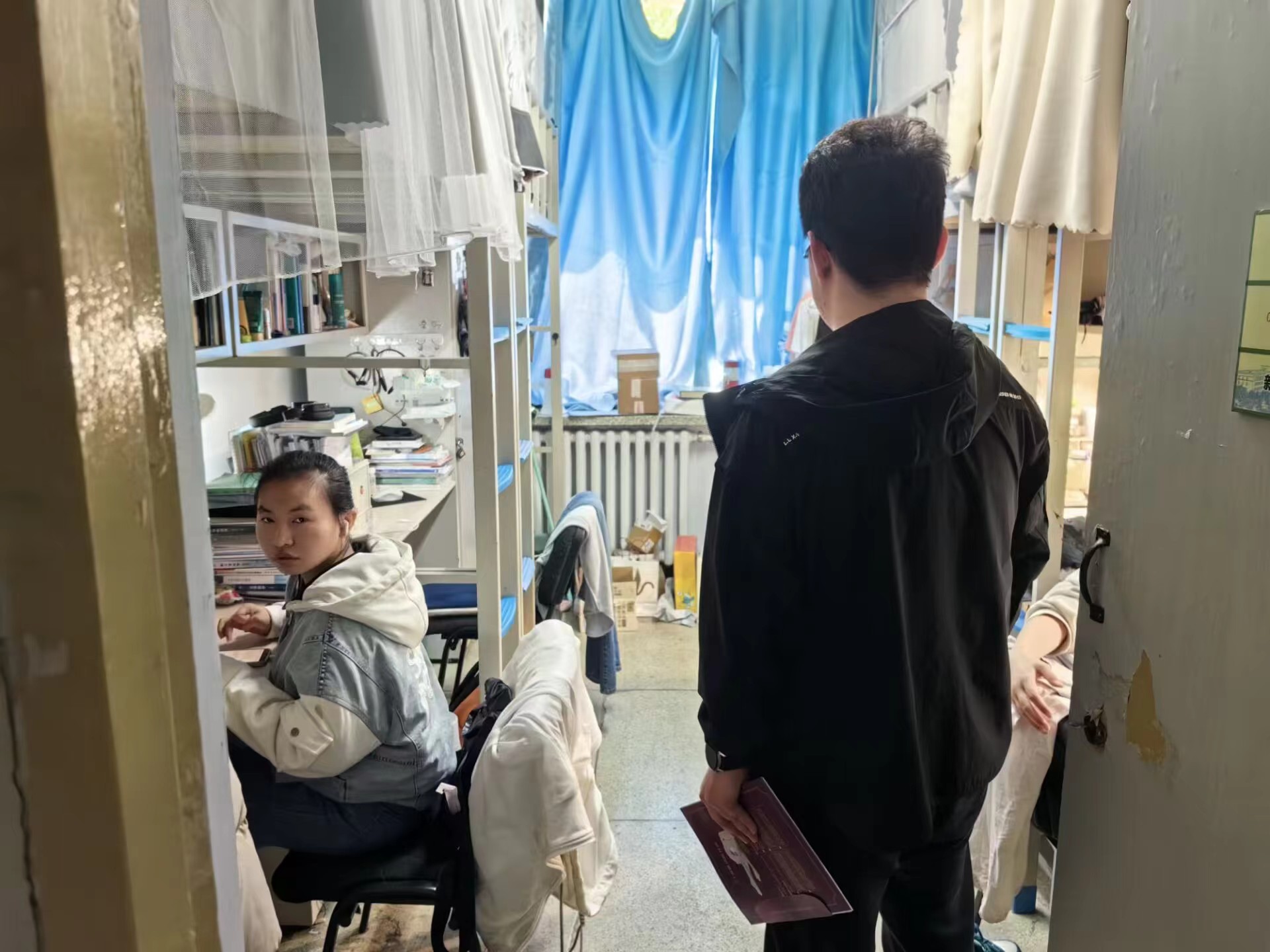 本周为春季学期第十四个教学周,员工工作办公室全体成员对两个校区的四所员工公寓进行安全卫生检查,检查楼宇包括中心校区南苑一公寓、南苑二公寓、朝阳校区五公寓、七公寓,共覆盖120间员工寝室,员工公寓本周安全卫生检查情况附后。本次检查中女生寝室卫生情况整体优于男生寝室,没有发现违章电器情况。本周降雨不断,检查过程中各位老师嘱咐同学们及时加衣注意保暖,为即将到来的期末考试做好准备。