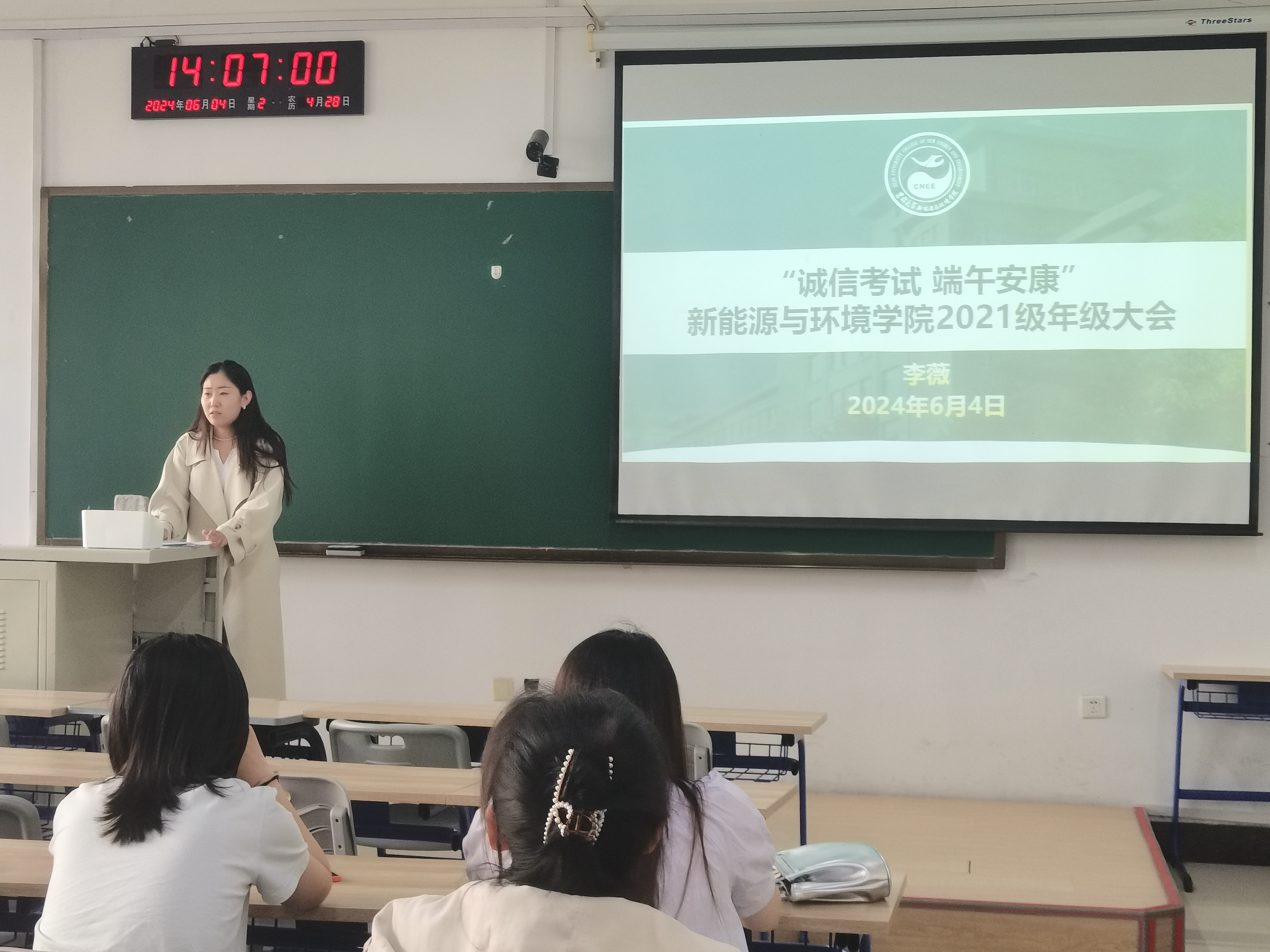 为弘扬诚信精神,增强员工安全意识,迎接即将到来的端午节,确保员工在校及出行安全,伟德bv国际体育员工工作办公室全体辅导员于2024年6月5日-6日先后组织各年级同学开展了“诚信规范,安康端午”主题年级大会。