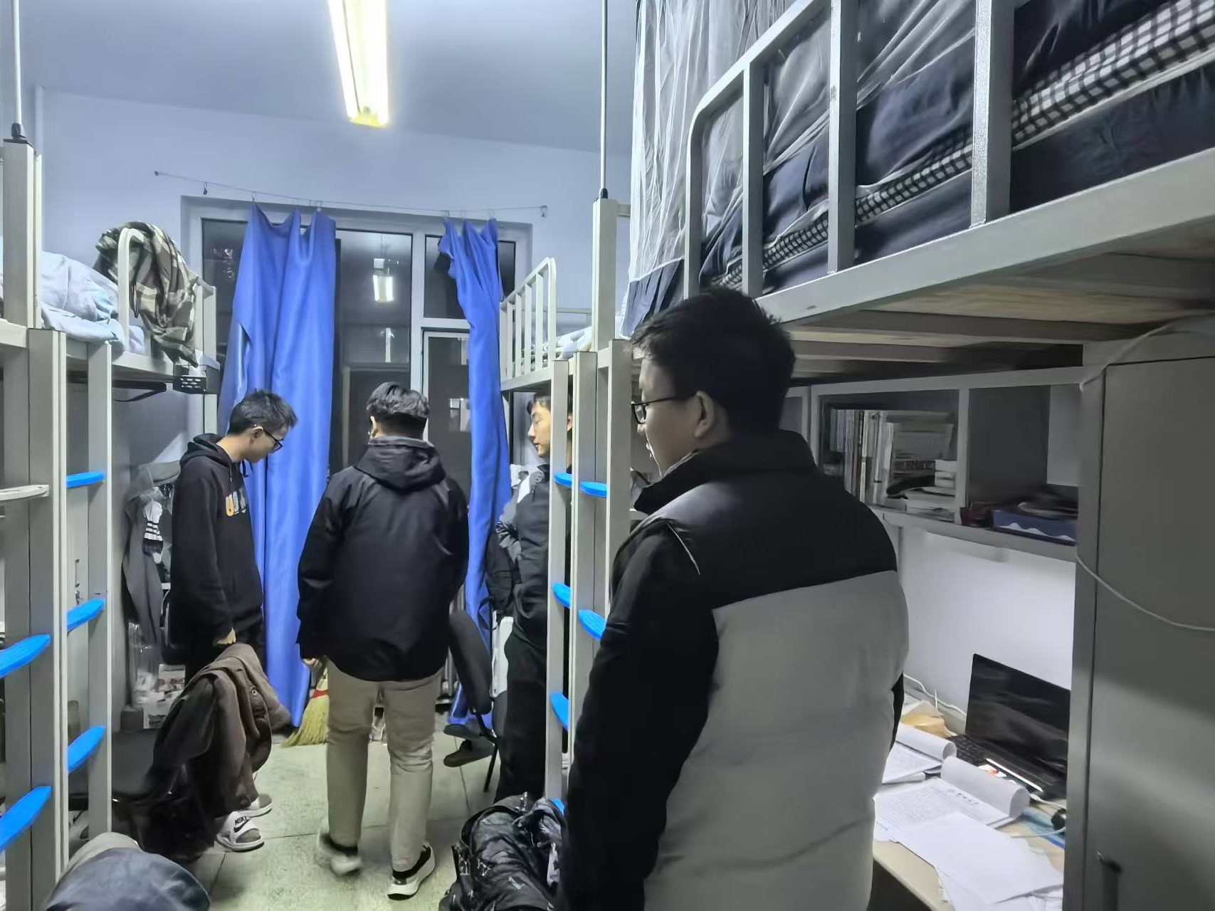 10月30日,2022级辅导员母茂松老师进入《地下水动力学A》课堂,检查员工到课情况,本次课程共计5人未到、1人迟到。11月3日,母老师进入朝阳七公寓进行查寝,提醒员工进入冬季需定期开窗通风,保持室内卫生。