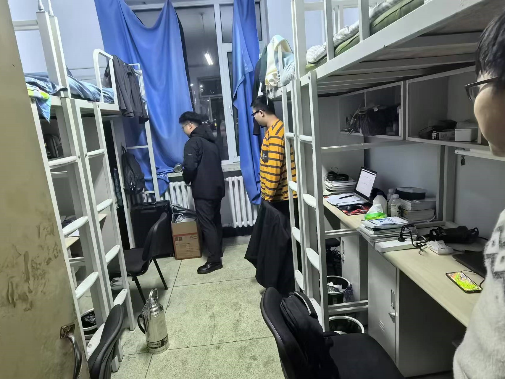 11月12日,2024级新生辅导员助理姜兆轩进入南苑一公寓员工寝室,检查寝室卫生和消防安全,提醒员工定期整理寝室内务,整齐摆放个人物品。