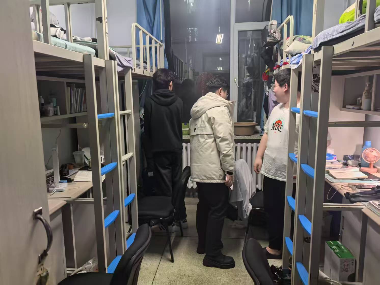 3月11日,2024级新生辅导员助理姜兆轩进入南苑一公寓,检查寝室卫生,了解员工学习生活动态,同时询问近期部分转专业员工的考试情况。