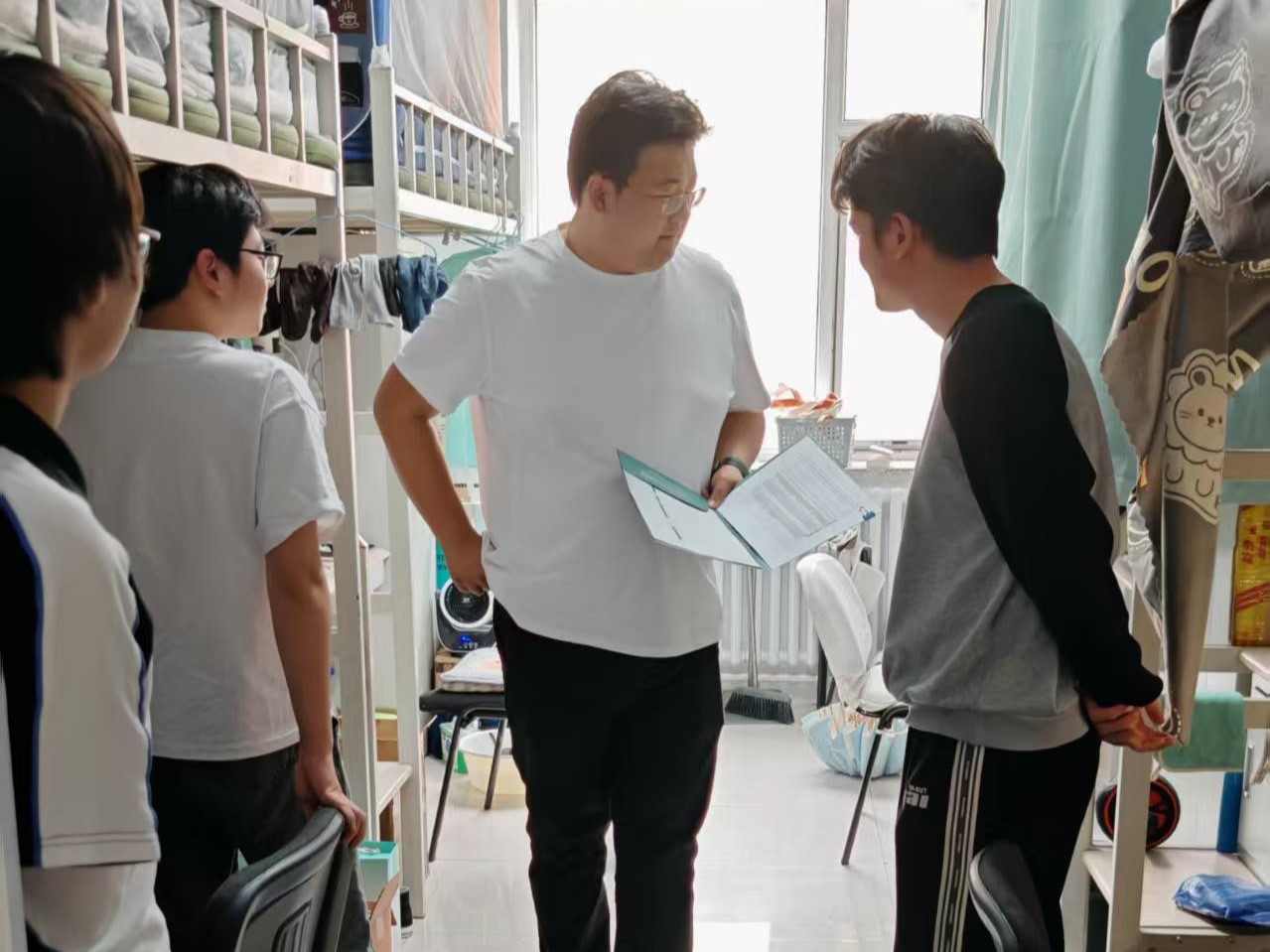 6月12日,2022级辅导员母茂松老师进入朝阳七公寓检查消防安全和寝室卫生,提醒员工及时整理寝室卫生,做好期末学习考试准备。