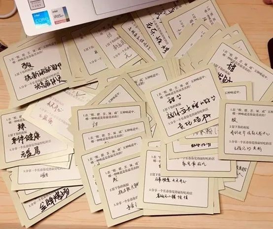 本次共100人参与进活动中,从卡片的答案中来看,在酸、甜、苦、辣、咸中,每一种味道都有最喜欢它的同学,也正是大家的不同让生活也变得多姿多彩。其实,从一个人平常喜欢吃什么味道的食物,也可以推知其性格的一二,下面附上不同味道对应的性格,大家一起来看一看准不准~