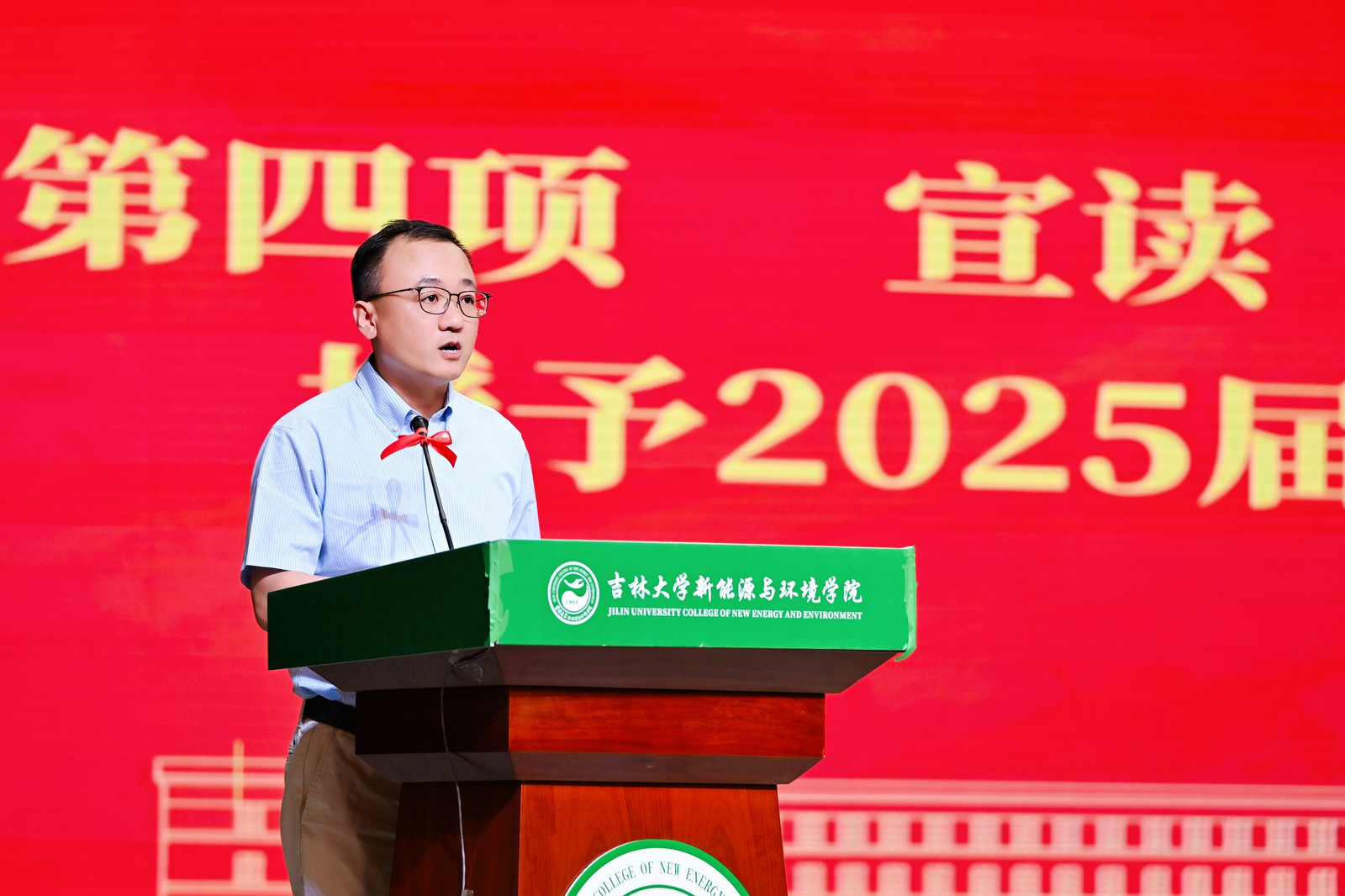 水文与水资源系主任罗建男作为教师代表发言,罗老师鼓励毕业生享受当下,在奋斗中感受过程的充实,用行动诠释着新能环人的深情与担当。