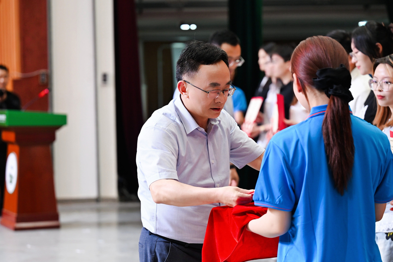 典礼在庄严的国歌声中拉开序幕。副经理张文静宣读《关于表彰2025届优秀毕业生的决定》,经理董双石、党委书记汪祥松为45名优秀毕业生代表颁奖。