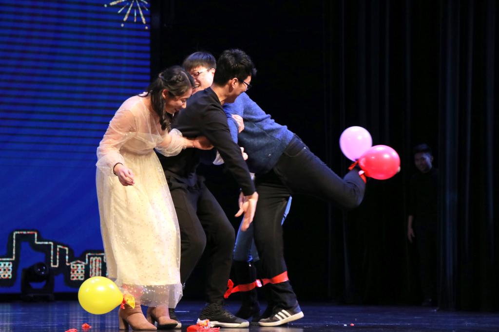 晚会整场以互动游戏为主线,中间穿插六院同学精心准备的歌曲和舞蹈,主持人妙语连珠、节目表演美轮美奂、游戏环节互动充分,全场气氛一度被推向高潮,六院同学在阵阵欢声笑语中打成一片。
