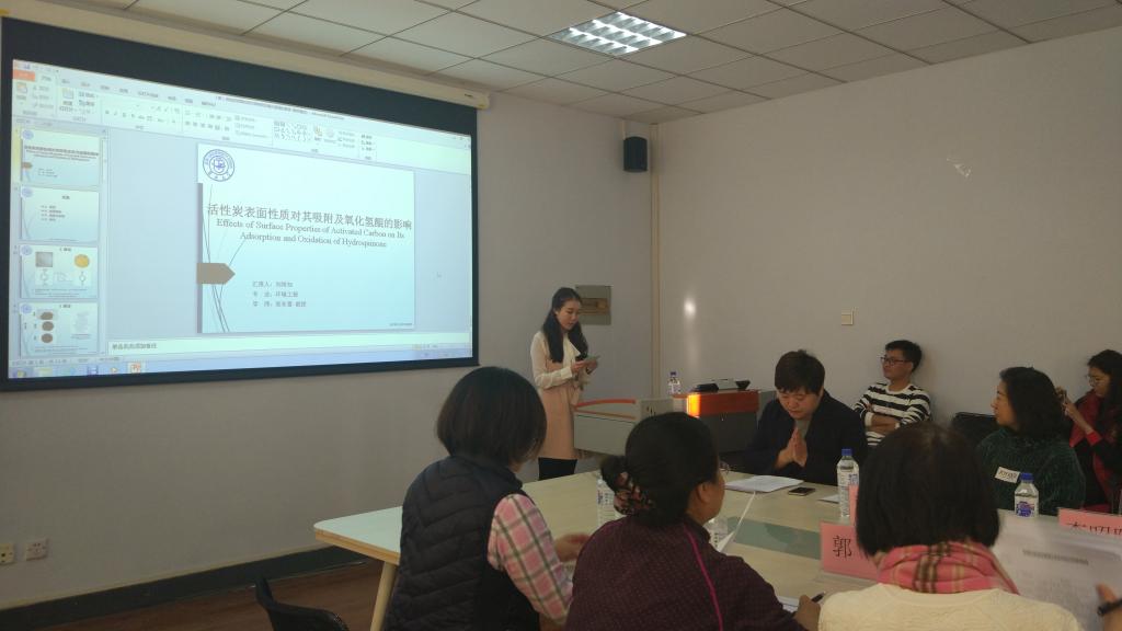 本次论坛讨论流程为报告者首先论述自己的科研成果,之后评委老师进行提问点评,指出存在的问题并评审打分。现场气氛热烈,研究范围广泛。本次论坛涉及到《人工回灌条件下地下水中腐殖酸胶体的迁移规律研究》、《海底甲烷泄漏条件下自生矿物形成的实验和数值模拟研究》、《单分散的介孔硅纳米球负载纳米零价铁的表征、对硝基苯的反应活性以及在多孔介质中的迁移性能研究》等多方面内容,从实验室模型到现实环境进行了深入分析。同时评委老师针对员工研究内容中存在的问题提出了专业的指导意见,并与同学们进行讨论。
