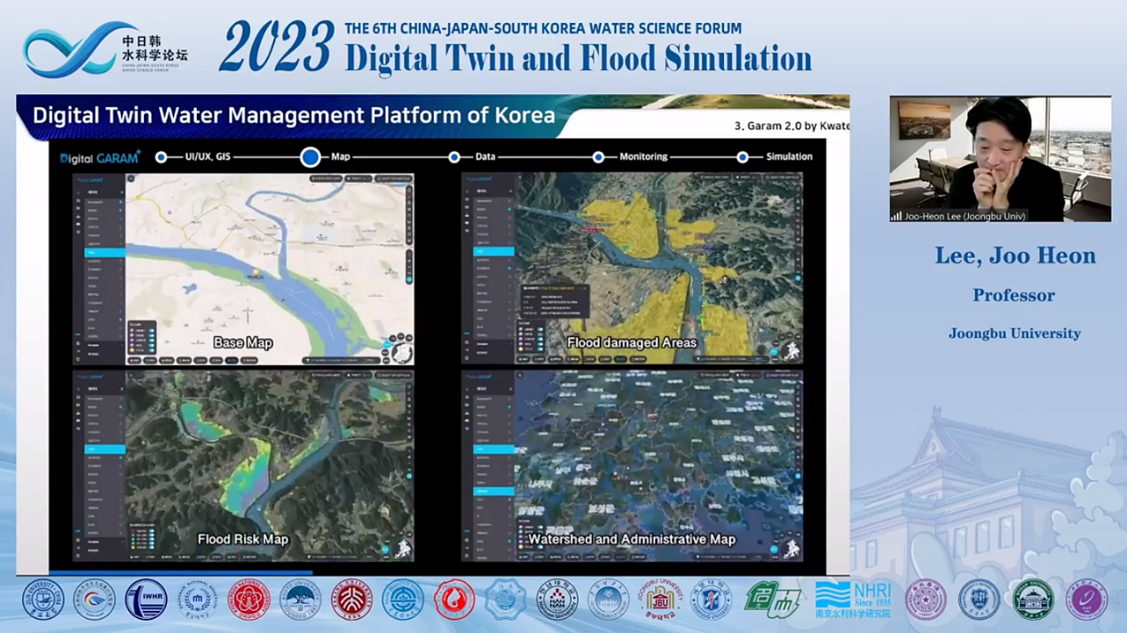 本届会议由伟德bv国际体育和水利部数字孪生流域重点实验室联合主办,韩国忠南国立大学、韩国庆北国立大学、日本京都大学共同承办,聚焦“数字孪生与洪涝模拟”主题,以线下特邀报告专场和线上全球直播形式召开。参会人员包括中日韩三国高校、科研院所和企事业单位100余位代表(线上、线下),在伟德bv国际体育微信公众号、ZOOM、腾讯会议三个平台全球同步直播。