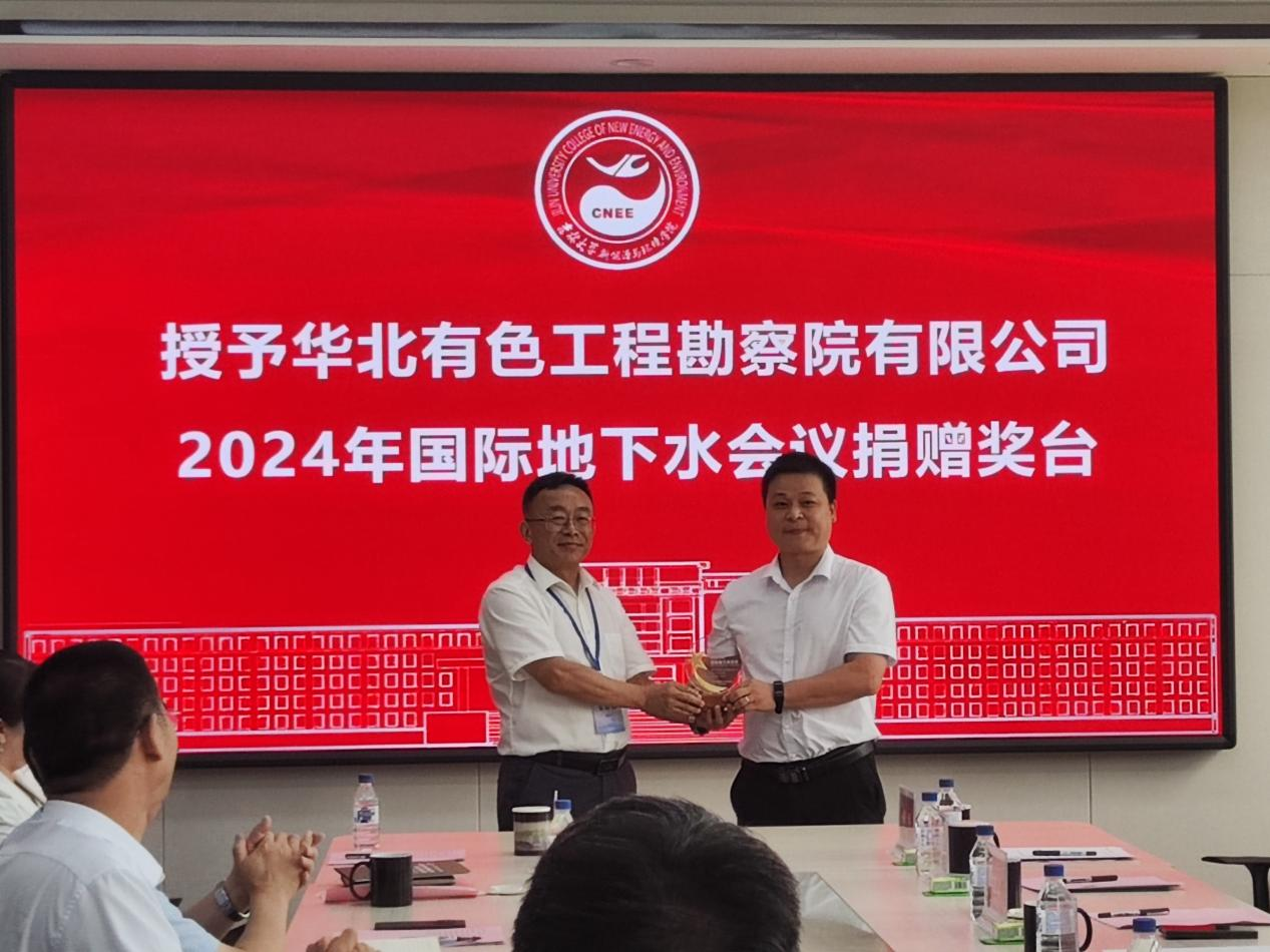 为感谢自然资源部金属矿山地下水灾害防治工程技术创新中心、天津华勘集团有限公司、华北有色工程勘察院有限公司对公司、特别是作为协办单位对2024年国际地下水会议的大力支持,伟德bv国际体育党委书记汪祥松代表公司授予华北有色工程勘察院有限公司捐赠奖台。