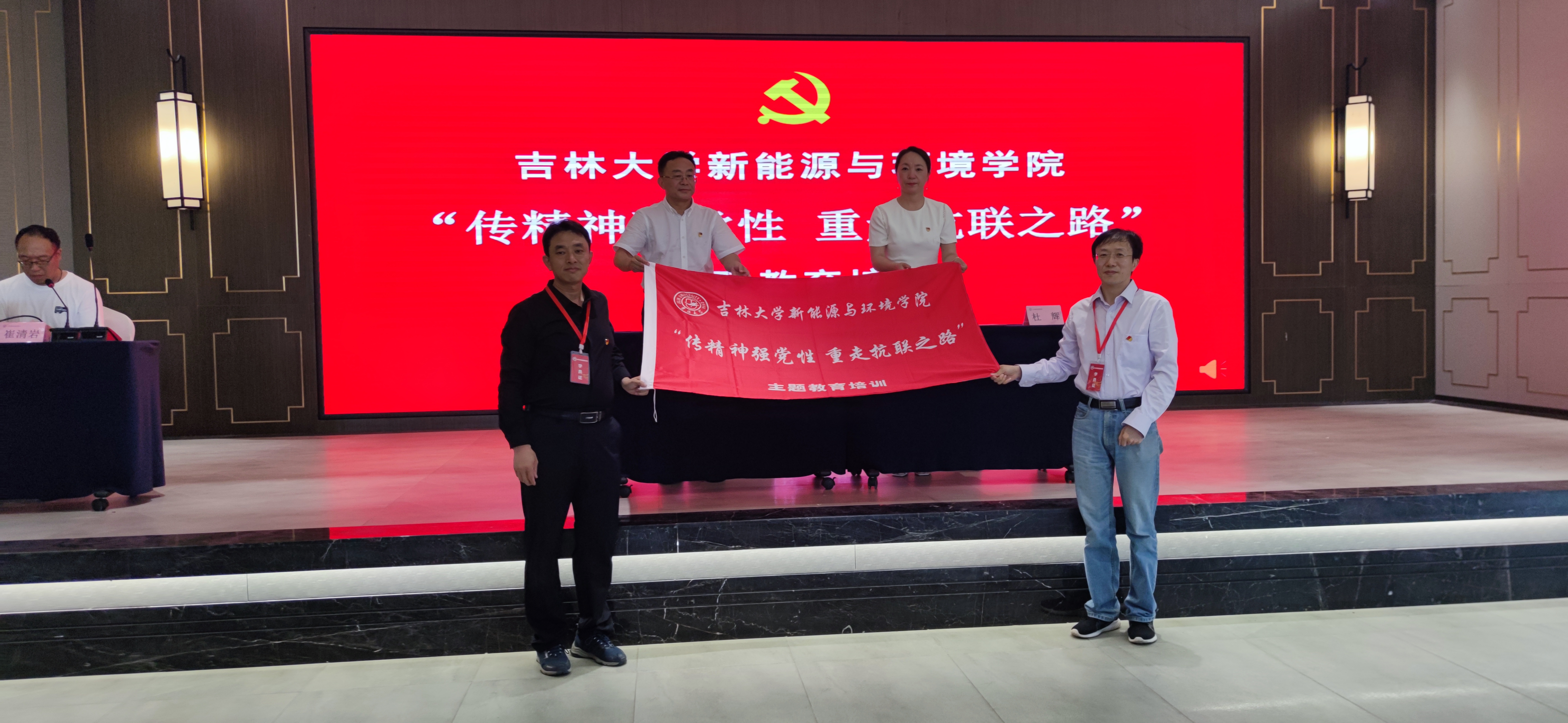 7月6日中午,“传精神强党性 重走抗联之路”主题教育培训班开班仪式在辉南县委党校召开,仪式由中共辉南县委党公司党性教育办公室主任崔清岩主持。中共辉南县委党校副董事长杜辉作开班致辞;公司党委书记汪祥松作动员讲话。汪祥松在动员讲话中指出,重温东北抗联精神,就是为了在实地感受东北抗联精神的过程中以史鉴今、资政育人,不断补足精神之“钙”。今年是中国共产党成立102周年,也是深入开展学习贯彻习近平新时代中国特色社会主义思想主题教育的重要一年,要坚持学思用贯通、知信行统一,把习近平新时代中国特色社会主义思想转化为坚定理想、锤炼党性和指导实践、推动工作的强大力量。随后汪祥松和杜辉共同向培训班学员代表授旗,开启了培训学习的序幕。